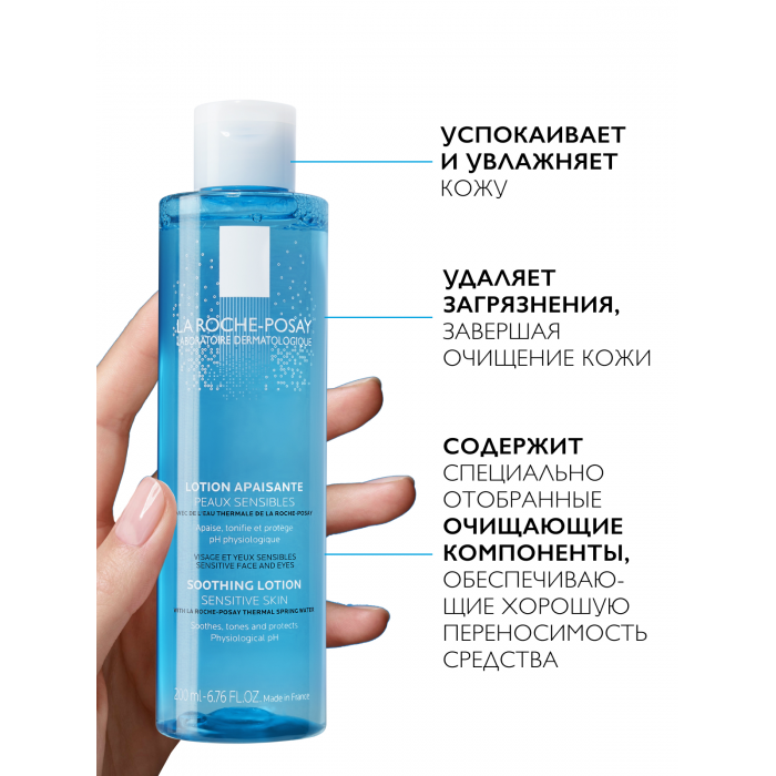 Свойства: Успокаивающий тоник эффективно удаляет макияж и успокаивает кожу. Обладает оптимальной переносимостью. На основе Термальной воды La Roche-Posay. Физиологический уровень рН. Не содержит мыла, спирта, красителей и парабенов. Некомедогенно.