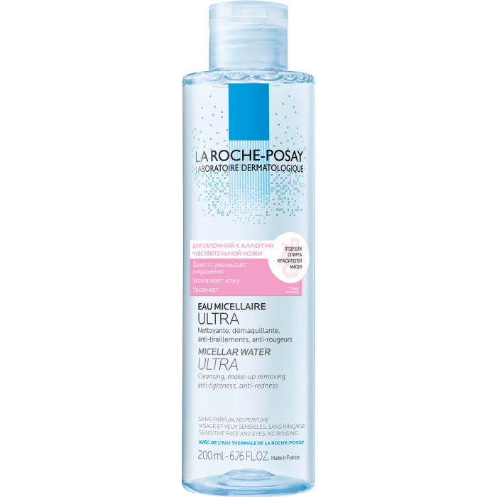 Новая архитектура формулы мицеллярной воды, разработанная Дерматологической лабораторией La Roche-Posay, позволила соединить силу мицелл и глицерина для достижения ультра эффективности и оптимальной переносимости. Новая мицеллярная вода равномерно распределяется по поверхности кожи, не вызывает трения и повреждения защитного барьера кожи. Благодаря новой формуле средства происходит прочный захват и удержание всех частиц макияжа и микро-загрязнений. Содержит термальную воду La Roche-Posay. Мицеллярная вода ULTRA предназначена для чувствительной и склонной к аллергии кожи лица и глаз. Формула обеспечивает: - моментальное очищение и удаление макияжа; - уменьшение покраснения и чувства стянутости; - увлажнение кожи. Не содержит парабенов, мыла, красителей,маслянистых компонентов и спирта.Физиологический уровень pH 5.5.