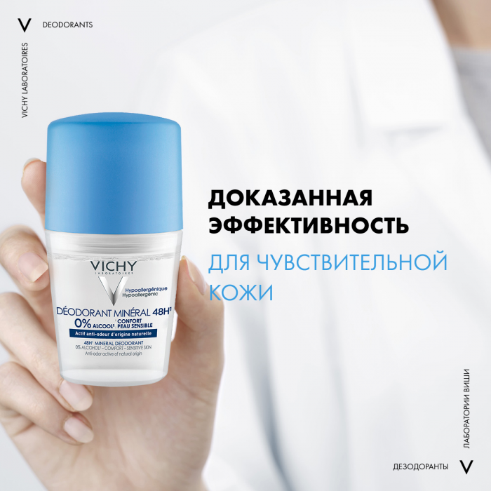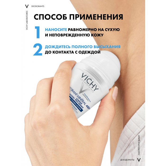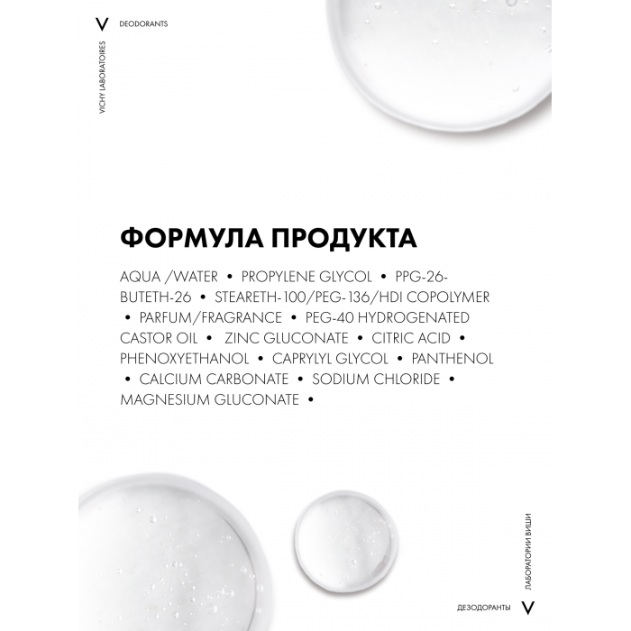 Формула в основе нового дезодоранта VICHY без солей алюминия – настоящий коктейль важных для кожи минералов, подкрепленный минерализирующей термальной водой VICHY.