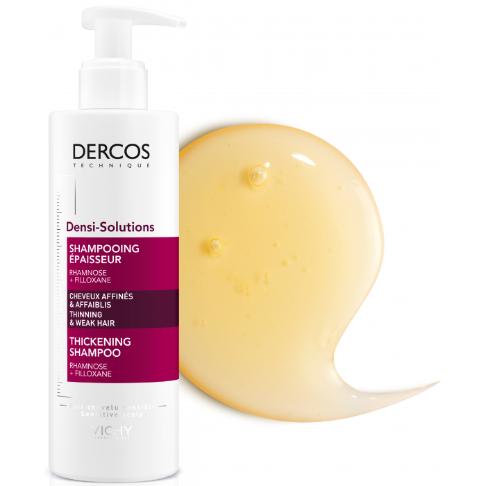 Наши волосы хранят в себе следы негативных воздействий, которым они когда-либо подвергались. Качество волос страдает как от внешних факторов горячей укладки, ультрафиолета, холода или неправильного ухода, так и от внутренних изменений, стресса, гормональных колебаний. Все это может привести к нарушению структуры волокна волоса, переходу части фолликулов в фазу покоя. Стержни волос истончаются, становятся менее прочными и упругими, в результате, прическа теряет объем и густоту. Верните лучшее время Ваших волос с DERCOS DENSI-SOLUTIONS. Эксперты Лабораторий VICHY разработали инновационную гамму средств по уходу за волосами, которая комплексно борется со всеми аспектами проблемы истончения волос. Сыворотка увеличивает количество волос, шампунь повышает их плотность, а бальзам восстанавливает структуру.