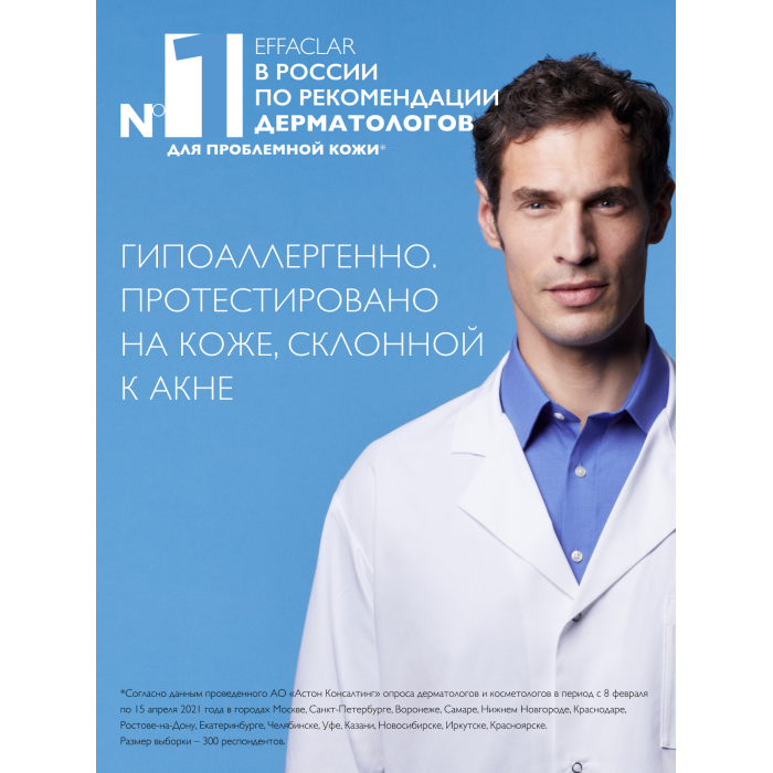Эфаклар Лосьон незамедлительно, глубоко и тщательно очищает поры кожи и сокращает их размер.