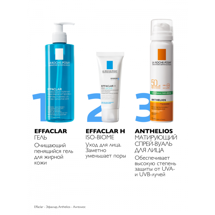 Содержит молекулу «Эрлициум». Обладает матирующим действием и контролирует источники жирного блеска: пот, себум. Обладает антиоксидантным действием. Содержит Термальную воду La Roche-Posay, богатую Селеном, природным антиоксидантом.