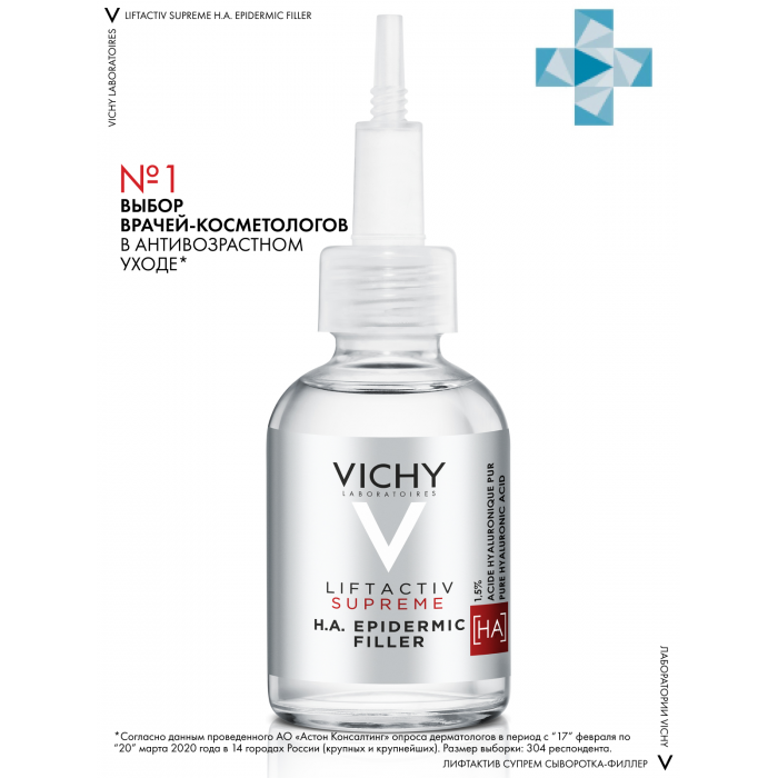 Maximize В результате длительных исследований в поиске альтернативы косметологическим процедурам, Эксперты лабораторий Виши разработали Инновацию* - Гиалуроновую сыворотку-филлер пролонгированного действия Liftactiv Supreme с рекордной концентрацией* чистой Гиалуроновой кислоты [1,5%] для ежедневного восполнения Гиалуроновой кислоты в эпидермисе.