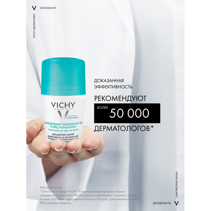 Ощущение комфорта, здоровая и чистая кожа в течение 48 часов.Эффективность в течение 48 часов. Каждую последующую неделю применения потоотделение постепенно нормализуется. Не содержит спирта.