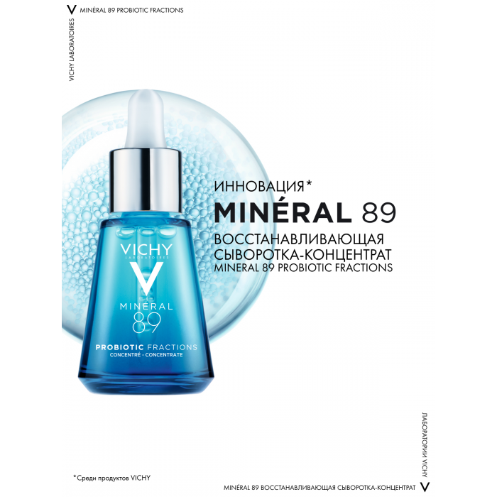 Инновация от Vichy – укрепляющая и восстанавливающая сыворотка-концентрат MINÉRAL 89 PROBIOTIC FRACTIONS призвана бороться со следами ежедневного стресса и усталости: