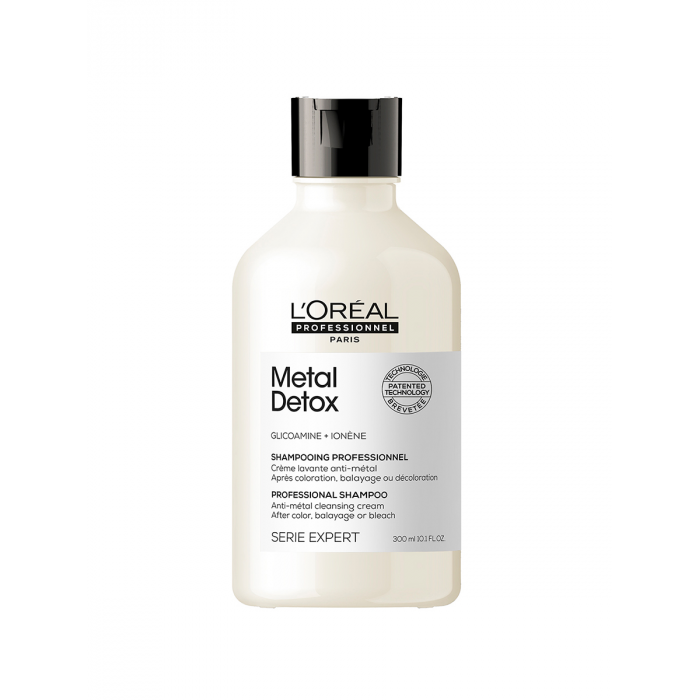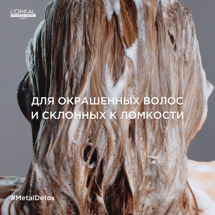 Metal Detox – инновационный уход, разработанный совместно с лучшими стилистами и учеными во всем мире. Его действие направлено на нейтрализацию металлических частиц меди, скапливающихся в кортексе волоса. Такие частицы попадают в волос вместе с водой из-за износа труб или жесткости воды, вызывают риск ломкости и могут негативно влиять на результат окрашивания. В степени накопления металла также играет роль пористость волос: чем она выше, тем легче металлические частицы проникают в структуру волоса. Металл, который активнее всех мешает работе окислительных процессов, и напрямую сказывается на качестве окрашивания – медь. Благодаря действию запатентованной молекулы Гликоамина в своем составе, бессульфатный шампунь Metal Detox выводит металлы, мягко очищает волосы и удаляет накопленные частицы. Формула шампуня заботится о состоянии волос, сокращая их ломкость на 87%, и гарантируя профессиональный результат услуги окрашивания, балаяжа или осветления. Легкая, но плотная пена делает процесс мытья легким и приятным, оставляя после себя брендовый аромат Golden Caviar – идеальную гармонию терпкого бергамота и обволакивающего древесно-мускусного аккорда. Результат: Чистота оттенка, в два раза больше блеска волос. Гамма Metal Detox совместима со всеми красителями и осветляющими продуктами.