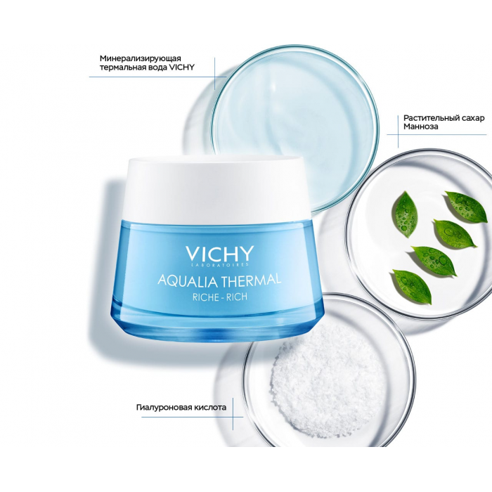 Крем Vichy Aqualia Thermal содержит 97% ингредиентов натурального происхождения. Оставшиеся 3% введены для приятной текстуры и сохранения формулы. Подходит для очень сухой кожи.