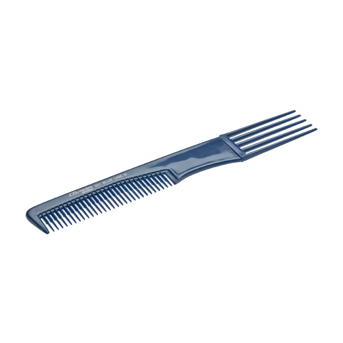 Расческа длинной 19.5 сантиметров с зубцами средней частоты. В районе ручки расположены 5 длинных зубцов, ими удобно разделять прядки при окрашивании и мелировании, а также делать начес для более интересного объема.