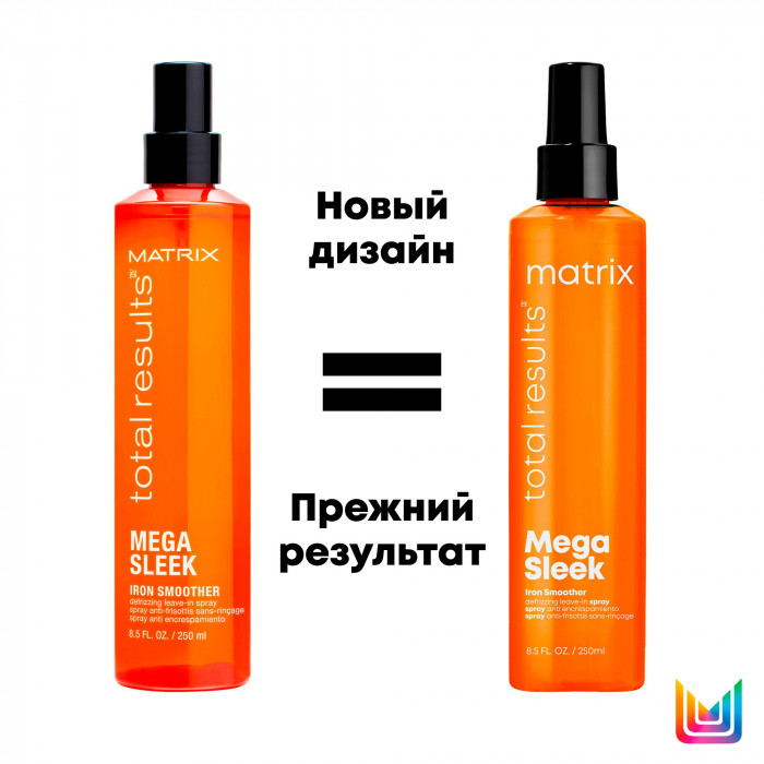 Спрей для гладкости волос Mega Sleek Iron Smoother защищает волосы от воздействия термоинструментов, устраняет пушистость волос и придает им гладкость в течение всего дня.