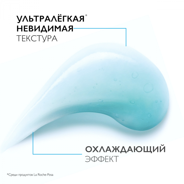 Ультралегкая гелевая текстура, невидимая на коже. Охлаждающий эффект: -3.6 °C* сразу после нанесения. Не закупоривает поры. Подходит в качестве базы под макияж.