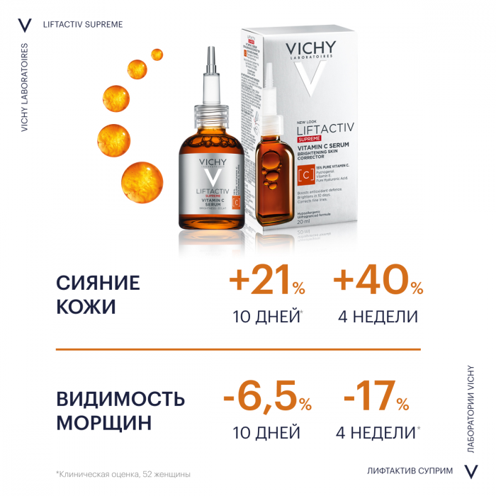 Возраст и агрессивное воздействие внешних факторов окружающей среды таких как загрязнение и УФ излучение, приводят к образованию морщин и тусклому цвету кожи. Для борьбы с этими проблемами была создана Концентрированная сыворотка с витамином С для сияния кожи.