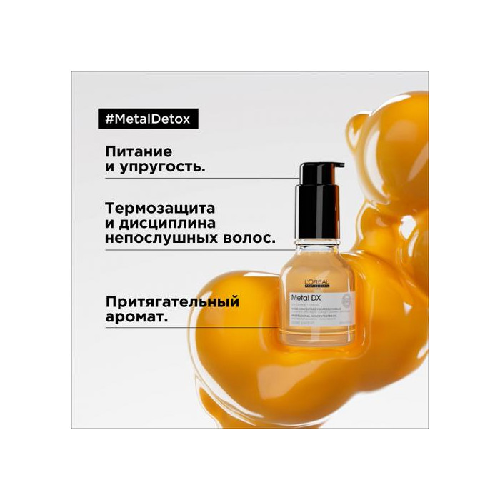 Масло-концентрат Metal Detox сохраняет цвет и предотвращает искажение оттенка. Входящая в состав молекула гликоамин деактивирует частицы металлов, которые проникают в структуру с каждым мытьем головы водопроводной водой. Защищает от ломкости.