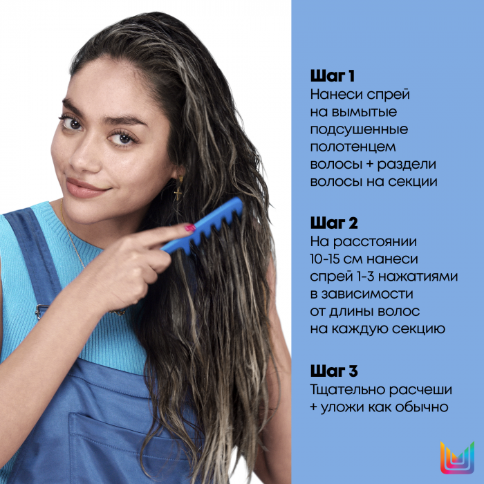 Наноси спрей на вымытые подсушенные полотенцем волосы, предварительно разделив их на секции. На расстоянии 10-15 см нанеси спрей 1-3 нажатиями в зависимости от длины и густоты волос на каждую секцию. Тщательно расчеши, уложи как обычно. Можно использовать отдельно или после шампуня, кондиционера или маски Brass Off. Спрей содежит фиолетовый пигмент. Будь аккуратна при нанесении: может оставить следы на одежде.