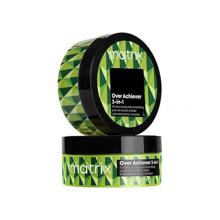 Maximize 3 в 1 крем + паста + воск Over Achiever от Matrix наносится, как крем, текстурирует, как паста, и фиксирует, как воск. Пластичная формула не склеивает волосы. Подходит для повторного моделирования укладки. Аромат раскрывается нотами арбуза, нектарина, яблока.