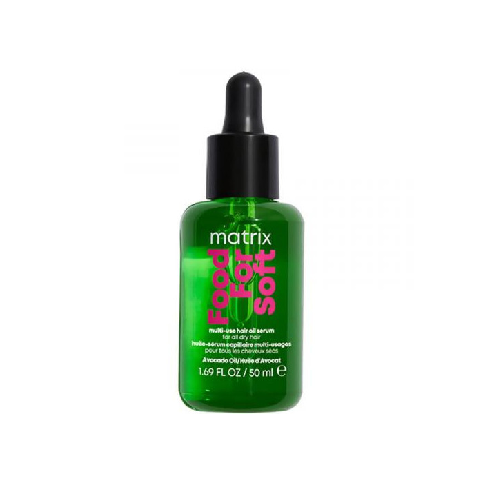Maximize Многофункциональное масло-сыворотка Food For Soft с маслом авокадо подходит для всех типов сухих волос. Несмываемый уход запечатывает влагу и делает волосы блестящими и гладкими мгновенно. Визуально уменьшает количество секущихся кончиков. Работает как термозащита до 230 °С.