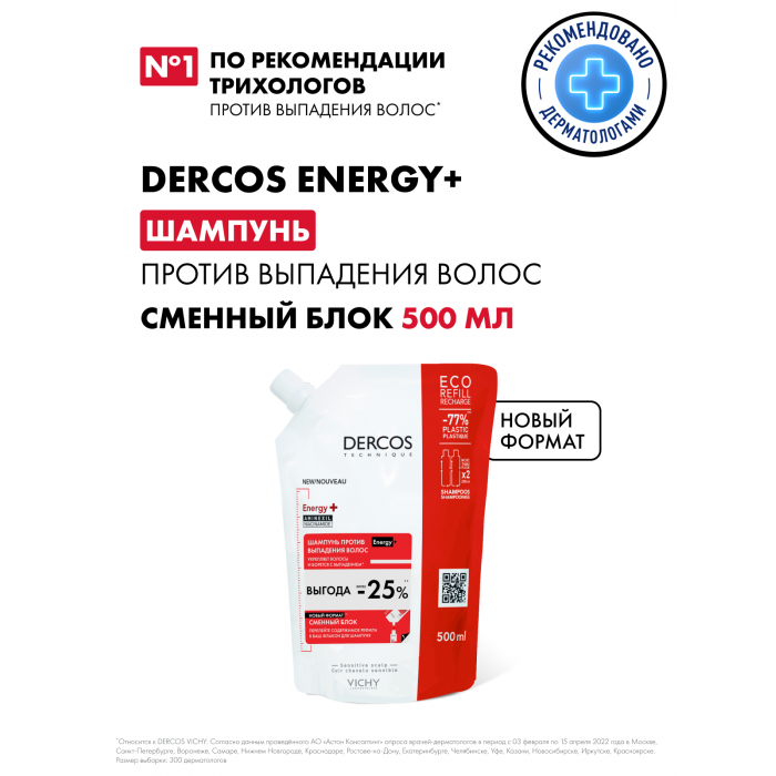 Процесс выпадения волос неразрывно связан с влиянием экспозом-факторов – комплексом биологических и экологических воздействий, которым ежедневно подвергается наш организм. Формула шампуня Energy+ объединила в себе высокоэффективные ингредиенты, воздействующие на кожу головы, корни волос и стержень волоса. Аминексил - известная молекула с клинически доказанной эффективностью, борется с выпадением волос. Ниацинамид способствует росту более сильных и крепких волос. Витамин Е укрепляет волосы и дарит им жизненную силу. Результат: Кожа головы интенсивно очищена, что способствует большему объему у корней. +19% объема волос в течение 24 часов**. Выпадение волос* уменьшено, волосы ощутимо более крепкие, приобретают жизненную силу от корней до самых кончиков. +47% волокно волоса более сильное и прочное***. Подходит для частого применения. Гипоаллергенно. Протестировано под контролем дерматологов. Подходит для чувствительной кожи головы. Рекомендуем использовать шампунь Energy + совместно со Средством против выпадения волос AMINEXIL INTENSIVE 5 для МУЖЧИН или для ЖЕНЩИН. КРАСОТА ВОЛОС НАЧИНАЕТСЯ С ЗАБОТЫ О КОЖЕ ГОЛОВЫ Являясь одним из пионеров в области ухода за кожей головы и волосами, Лаборатории DERCOS уже более 50 лет изучают внутренние (биологические) и внешние (экологические) факторы, влияющие на состояние кожи головы и волос, чтобы на базе научных разработок создавать средства с доказанной эффективностью. Комплексные решения на базе высокоэффективных ингредиентов, адаптированные для различных потребностей кожи головы и типов волос, сочетают в себе эффективность, переносимость и особенные косметические свойства. * Выпадение волос вследствие ломкости. ** Инструментальный тест. *** Инструментальный тест, после 5 использований. DERCOS - Деркос. Energy+ — Энерджи+.
