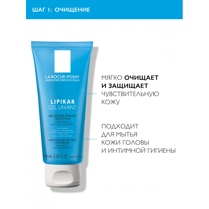 2. LA ROCHE-POSAY LIPIKAR Gel Lavante Успокаивающий гель для душа с защитными свойствами, 100 мл