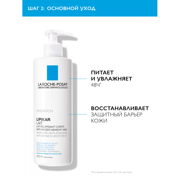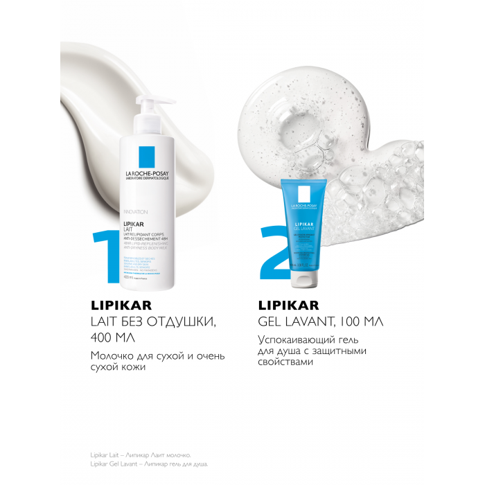 1. LA ROCHE-POSAY LIPIKAR Lait Молочко для сухой и очень сухой кожи младенцев, детей и взрослых, 400 мл