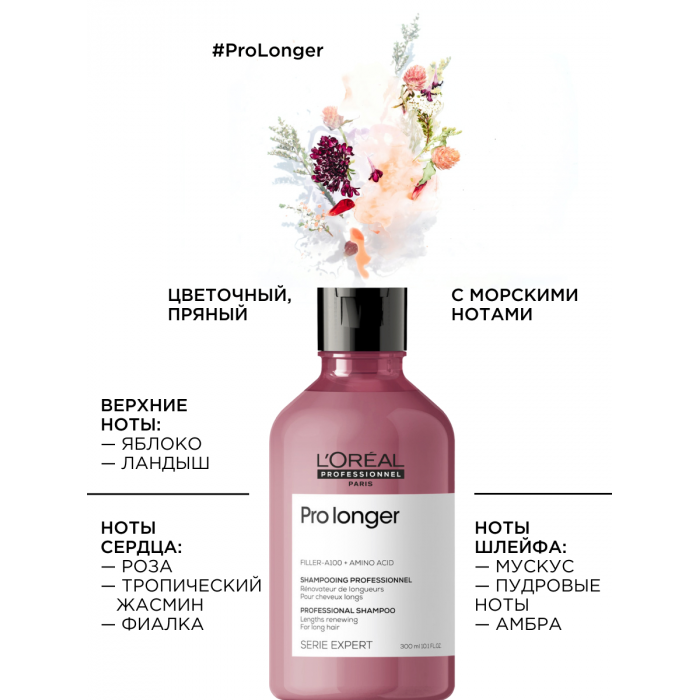 Шампунь разработан специально для тех, кто мечтает о красивых и длинных волосах. Профессиональная формула направлена на восстановление плотности волоса по всей длине и сокращение секущихся кончиков до 96%. Пудровый цветочный аромат c морскими нотами переносит в теплый летний день и притягательным шлейфом остается на волосах. Запатентованная технология Филлер-A100 объединяет два активных компонента: филоксан и поликватерниум PQ6. Они уплотняют волосы, придают им силы и увеличивают их сопротивляемость внешним агрессивным факторам.