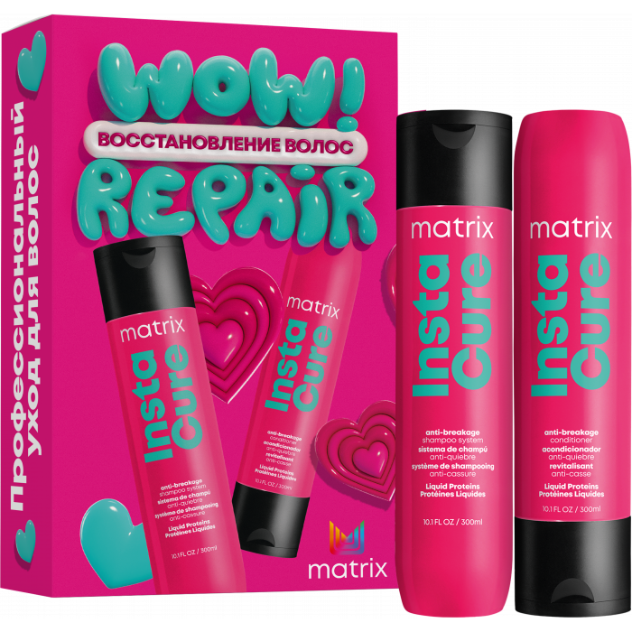 Maximize Профессиональный шампунь Instacure укрепляет волосы, а благодаря формуле, обогащенной жидким протеином, помогает восстановить силу ломких волос по всей длине. Укрепляющий кондиционер Instacure делает ослабленные волосы сильнее, восстанавливает кутикулу поврежденных волос, тем самым делая их гладкими, блестящими и послушными. Волосы значительно меньше спутываются при расчесывании. Гамма эффективно борется с секущими кончиками. На 60% меньше ломкости!* Аромат гаммы раскрывается нотами свежего имбиря, зеленого чая, лемонграсса, фрезии, майской розы, кедра.*При использовании системы Инстакюр из шампуня, кондиционера, спрея. Профессиональный бренд Matrix создан парикмахером. Основная идея профессиональных уходов Matrix - уход за волосами не должен быть сложным. Наши профессиональные гаммы созданы, чтобы в комплексе решать проблемы любых типов и видов волос. Легкие в применении, эффективные в действии. Открой для себя профессиональные уходы от Matrix в лимитированной подарочной упаковке.