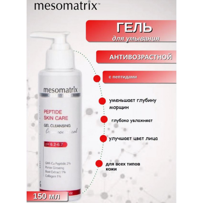 Maximize Пептидный гель мягко очищает кожу, возвращает ей тонус, препятствует увяданию. Трипептид меди GHK-Cu в составе является биологическим регулятором клеточного обновления, способствует уменьшению морщин и лифтингу кожи. Мягкие ПАВ и экстракт корня женьшеня дальневосточного бережно очищают кожу и готовят к следующим этапам ухода с космецевтикой MESOMATRIX.