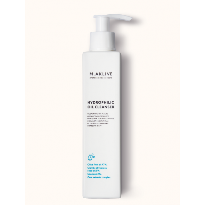 Maximize Гидрофильное масло M.AKLIVE на основе натуральных некомедоногенных масел в комплексе с увлажняющим блендом мягко и тщательно очищает кожу лица любого типа, благодаря принципу действия "подобное растворяется в подобном". Взаимодействуя с водой, продукт легко смывается с кожи без ощущения масляного финиша. Жирные кислоты, минералы и витамины в составе растительных компонентов дополнительно успокаивают и ухаживают за кожей, сохраняя ее гладкость и эластичность.
