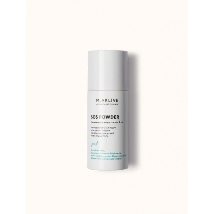 Maximize Мелкодисперсная SOS пудра для кожи лица и тела - универсальное многофункциональное средство для профилактики и быстрого устранения воспалений, снятия раздражений, адсорбции излишков себума и пота.
