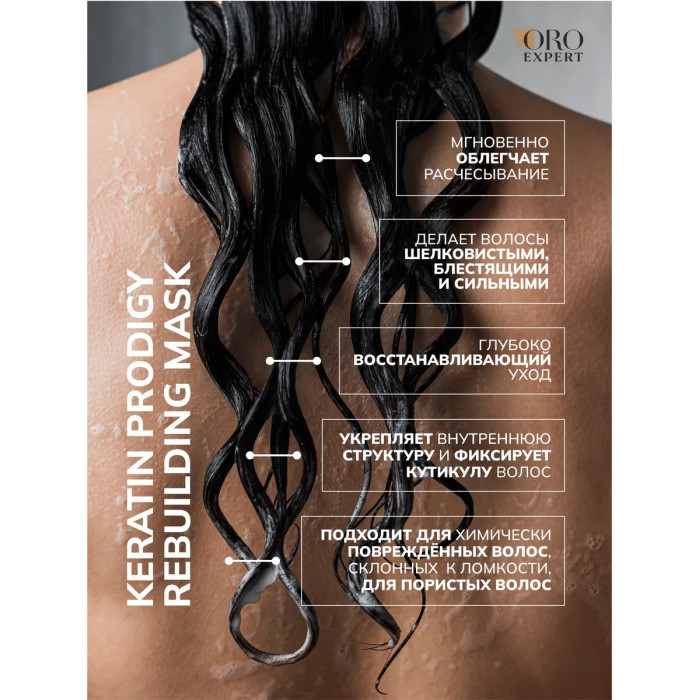 Повреждённые волосы полны микроскопических отверстий из-за недостатка керамидов. Керамиды восстанавливают сцепление волосяного волокна и уменьшают пористость волос. Они повышают их эластичность, сохраняют их увлажненными и снабжают белками. Кератин является одним из основных натуральных компонентов волос и ногтей. Возвращая белки волосам, волосы становятся сильнее и менее подвержены повреждению. Восстанавливающий уход линии Keratin Prodigy повышает способность волос удерживать влагу и защищает их от ломкости. Он разглаживает поверхность каждого волоса, делая его шелковисто-гладким, более сильным, эластичным и долговечным.