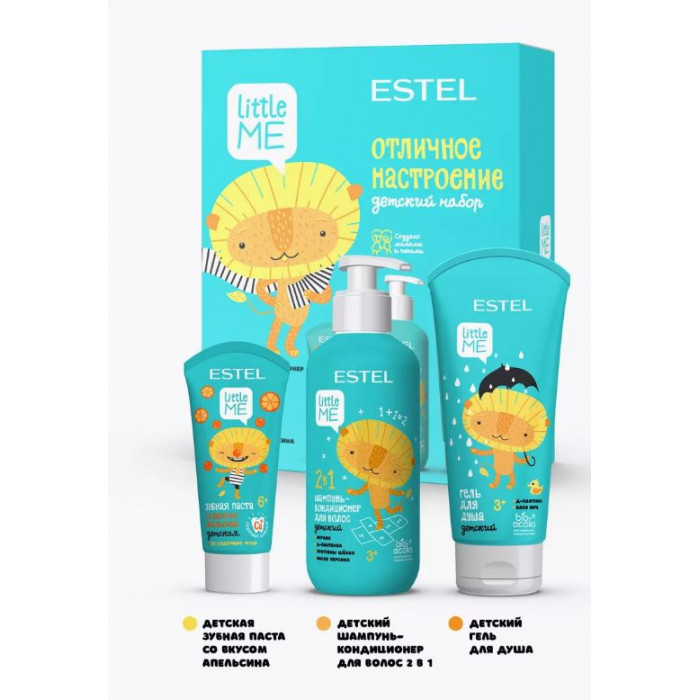 Maximize LITTLE ME - новая детская коллекция от ESTEL Новая сбалансированная, эффективная и безопасная коллекция косметических продуктов для Вашего малыша от бренда ESTEL - это абсолютно новые продукты, новый дизайн, новые ароматы и новые современные технологии! В коллекции LLITTLE ME есть абсолютно все! Как для девочек, так и для мальчиков. Это 14 продуктов для ухода за волосами, лицом, полостью рта и телом малыша! это настоящий детский салон красоты прямо у Вас дома! Эффективность и безопасность продуктов линейки обеспечивает уникальный олигосахарид BioEcolia. Он оказывает пребиотическое действие и стимулирует естественные защитные функции волос и кожи ребенка. Высокое профессиональное качество продуктов коллекции подарит Вашему малышу радость от ухода за собой.А еще, коллекция - это флакончики с малышами и забавными надписями, вкусные и тонкие ароматы, замечательные подарочные наборы и, конечно, хорошее настроение!Рекомендовано для детей с 3-х лет.