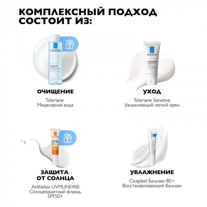 Крем: термальная вода La Roche-Posay в концентрации 74%, ниацинамид, церамид, глицерин.