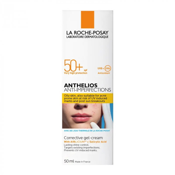 Anthelios солнцезащитный гель-крем для жирной, проблемной, склонной к акне кожи SPF 50+ разработан специально для фотозащиты жирной, проблемной и склонной к акне кожи, склонной к повторному появлению несовершенств после пребывания на солнце. Уникальная формула обеспечивает очень высокую степень защиты от UVA- и UVB-лучей, а также помогает бороться с существующими несовершенствами и предотвращать их появление после пребывания на солнце.