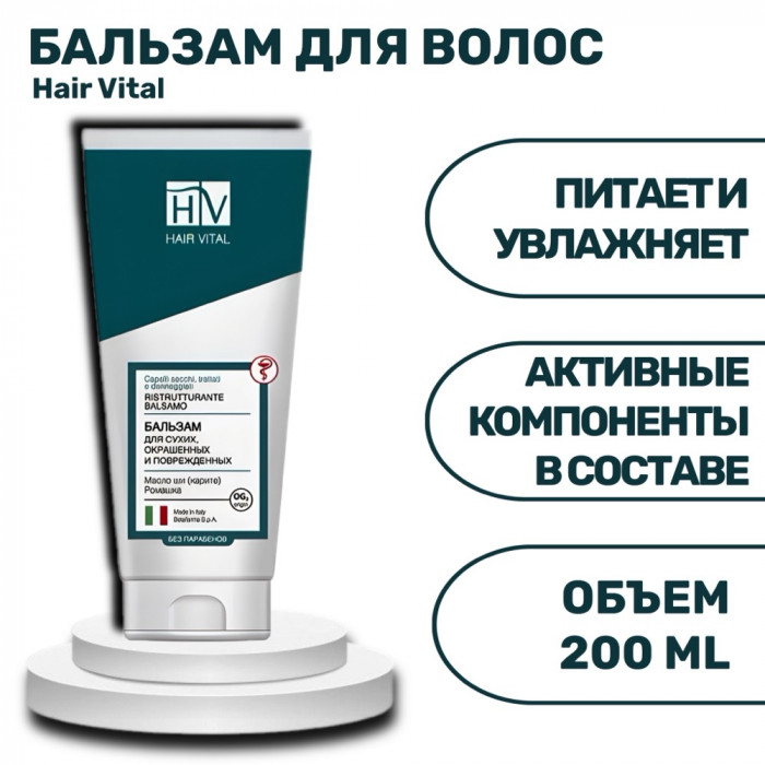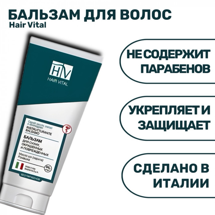 Бальзам-кондиционер HAIR VITAL предназначен для ухода за сухими, окрашенными и поврежденными волосами. Это средство помогает восстановить здоровье волос, улучшая их структуру и возвращая им природный блеск и мягкость. Формула бальзама разработана с учетом потребностей поврежденных волос, часто подвергающихся окрашиванию или термическому воздействию.
