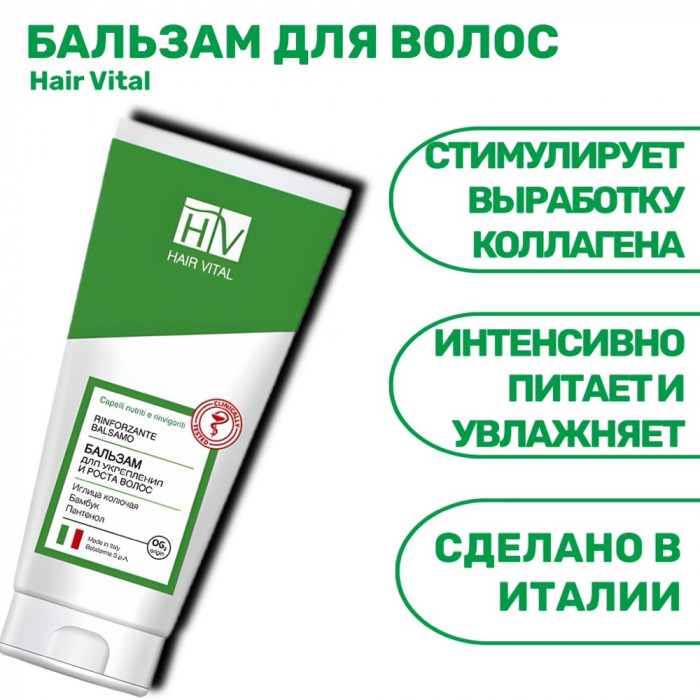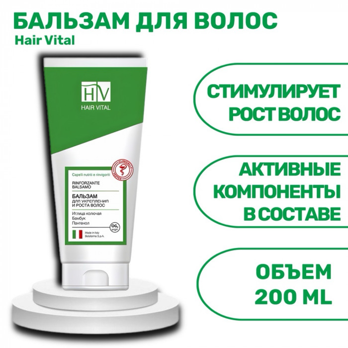 Бальзам HAIR VITAL Для укрепления и роста волос в объёме 200 мл — это эффективное средство для ухода за волосами, созданное специально для укрепления и стимуляции их роста. В составе продукта — натуральные компоненты, которые обеспечивают глубокое питание и увлажнение волос, способствуя их восстановлению и укреплению.