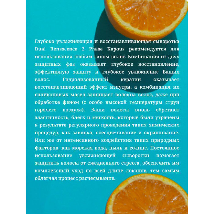 Kapous Увлажняющая сыворотка для восстановления волос «Dual Renascence 2 phase», 200 мл